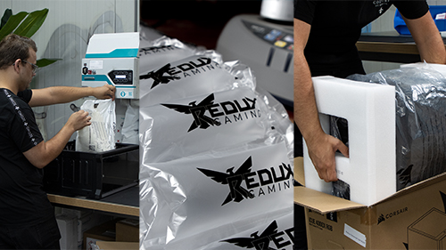 Wij geven net zo veel om jouw game PC als jij. Daarom zijn wij trots op onze verpakkings- en verzendingsmethode. Alle PC’s krijgen een speciale zak met chemisch uitzettend schuim aan de binnenkant, die ervoor zorgt dat de interne componenten op hun plek blijven tijdens vervoer. De PC wordt vervolgens verpakt in een doos en die doos stoppen we dan in een grotere doos met schokabsorberend materiaal. Als kers op de taart wordt elke zending verzekerd. Voorkomen is beter dan genezen.